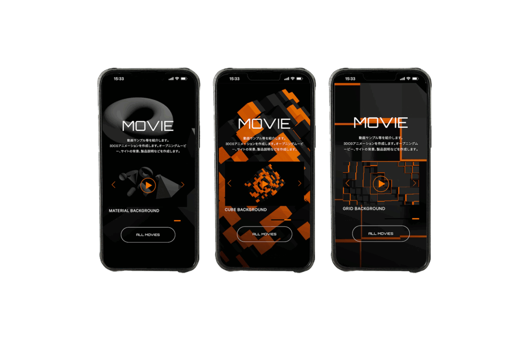動画サンプル等を紹介します。3DCGアニメーションを作成します。オープニングムービー、サイトの背景、製品説明などを作成します。
